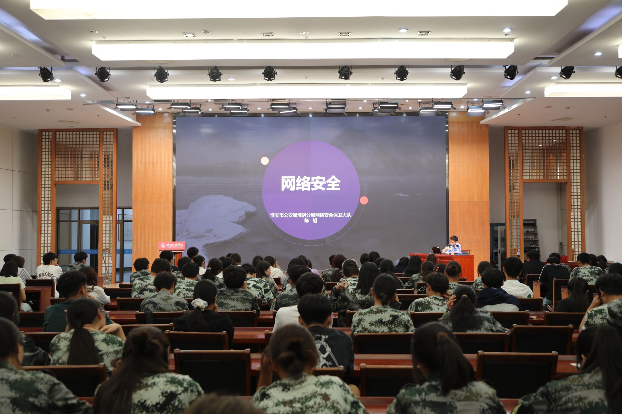 为提高 2025 级新生群体的识诈防诈反诈意识,同时正值国家网络安全宣传周期间,为进一步普及校园反诈防骗和网络安全知识,提高在校大学生安全防护意识。9月17日下午,保卫处邀请淮阴公安分局刑警大队城区中队徐永玲警官、网络安全保卫大队陈旭警官,为全体新生班干部开展了防范电信网络诈骗和网络安全专题培训讲座。徐永玲警官结合近年来高校诈骗案件特点,点明培训核心目的:“新生初入校园,社会经验相对不足,是诈骗分子重点瞄准的群体。...